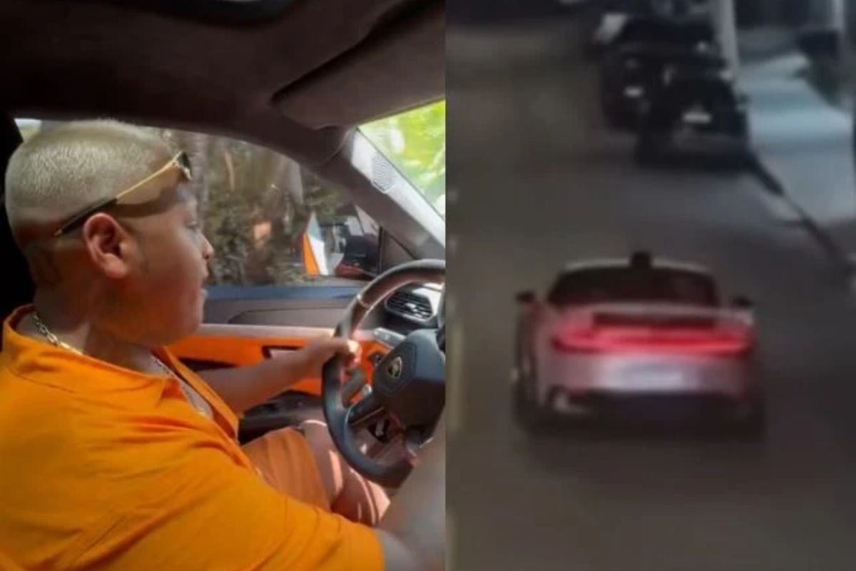 O funkeiro estava andando por uma rua quando passou em alta velocidade por uma vala e acabou quebrando algumas partes do veículo. O incidente foi gravado por um colega que estava filmando o novo carro de luxo.