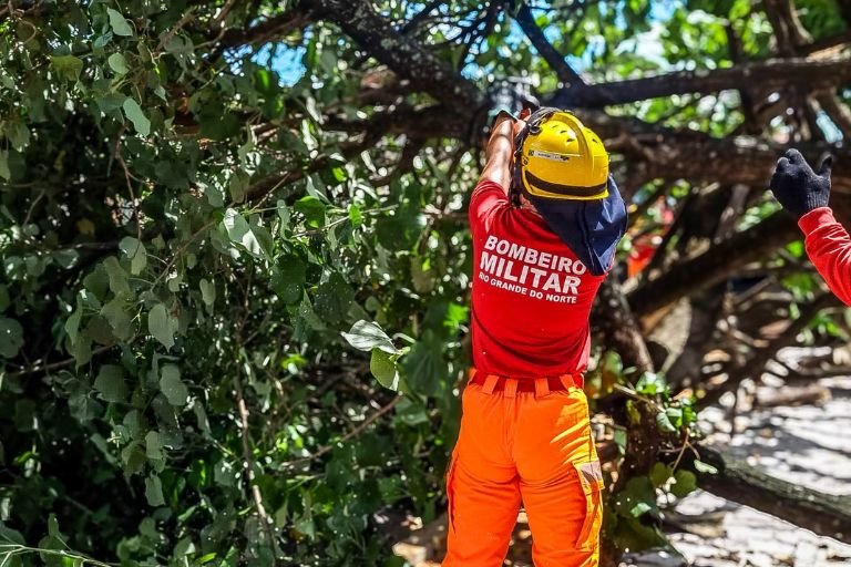 O Corpo de Bombeiros Militar do Rio Grande do Norte (CBM/RN) reforça a importância da prevenção e dos cuidados com quedas de árvores, especialmente durante períodos de chuvas intensas e ventos fortes, comuns no estado. Em situações onde há risco iminente à vida e ao patrimônio, o CBM/RN está preparado para atuar, como no caso de árvores que caem e oferecem perigo à segurança das pessoas ou à integridade de bens materiais. No entanto, é importante destacar que, em casos onde a árvore não representa perigo imediato, a responsabilidade pela remoção ou poda cabe à Prefeitura Municipal ou ao proprietário da área, em se tratando de propriedade privada.