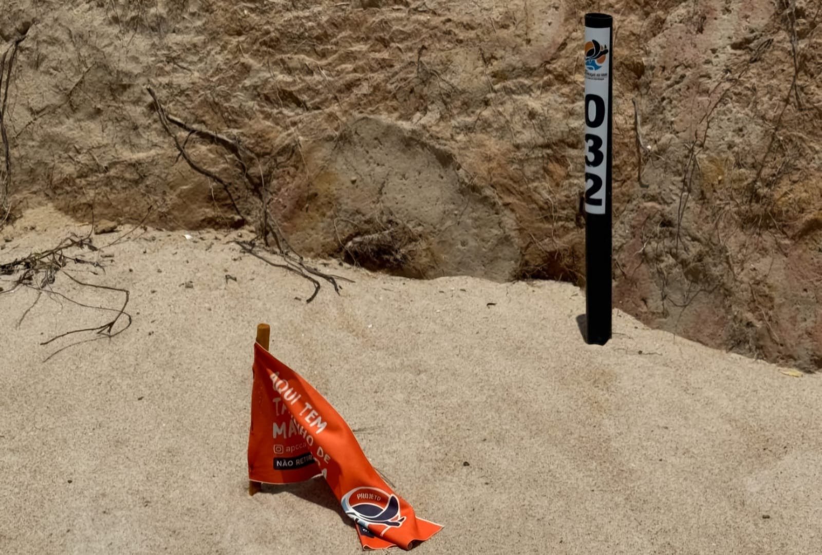 O avanço do mar em Maxaranguape está levando os ninhos de tartarugas, além de bandeiras e estacas usadas para sinalizar esses locais, no litoral Norte do RN.