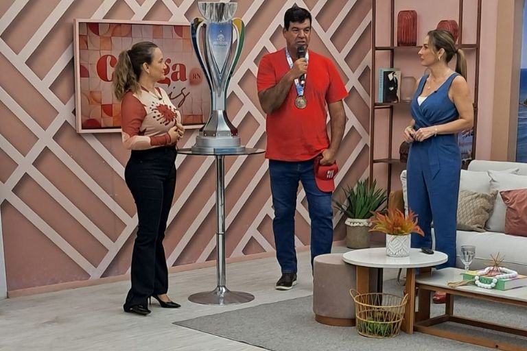 O técnico Moacir Júnior, tricampeão potiguar pelo América, participou do programa Chega Mais da TV Ponta Negra, nesta segunda-feira (31). Além da entrevista, o treinador trouxe com ele a taça do título estadual.