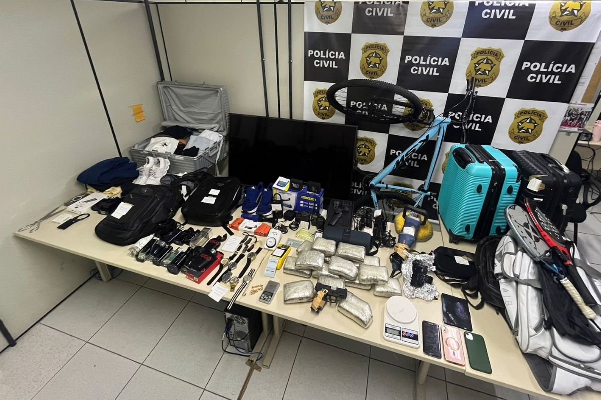 No local da prisão, as equipes apreenderam 15 tabletes de maconha, totalizando cerca de oito quilos da droga. Também encontraram uma arma de fogo, objetos suspeitos de serem produtos de crimes patrimoniais e uma tornozeleira eletrônica rompida.