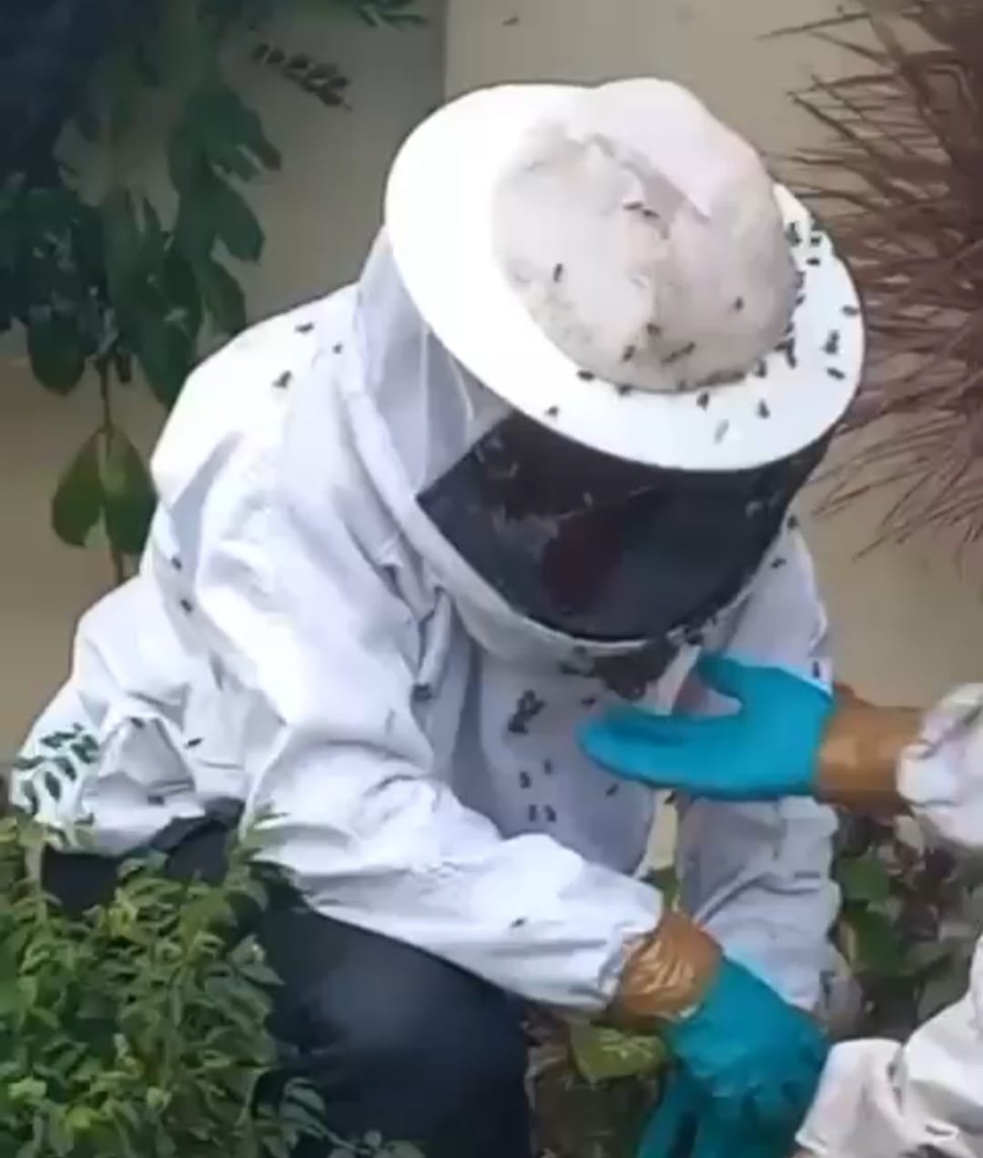 A solicitação foi feita pela proprietária do imóvel, que percebeu a presença de um grande número de abelhas no jardim da casa. Prontamente, uma equipe especializada do CBMRN foi enviada ao local e, ao chegar, identificou o enxame alojado entre a plantas da residência.