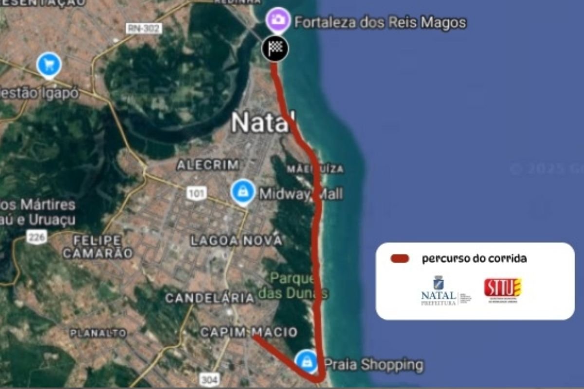 A largada do percurso será na Praia do Forte. Os atletas seguirão pela Av. Presidente Café Filho, Av. Governador Silvio Pedroza, Via Costeira e Av. Engenheiro Roberto Freire, onde realizarão o primeiro retorno em frente à loja Movida, completando assim a primeira volta.