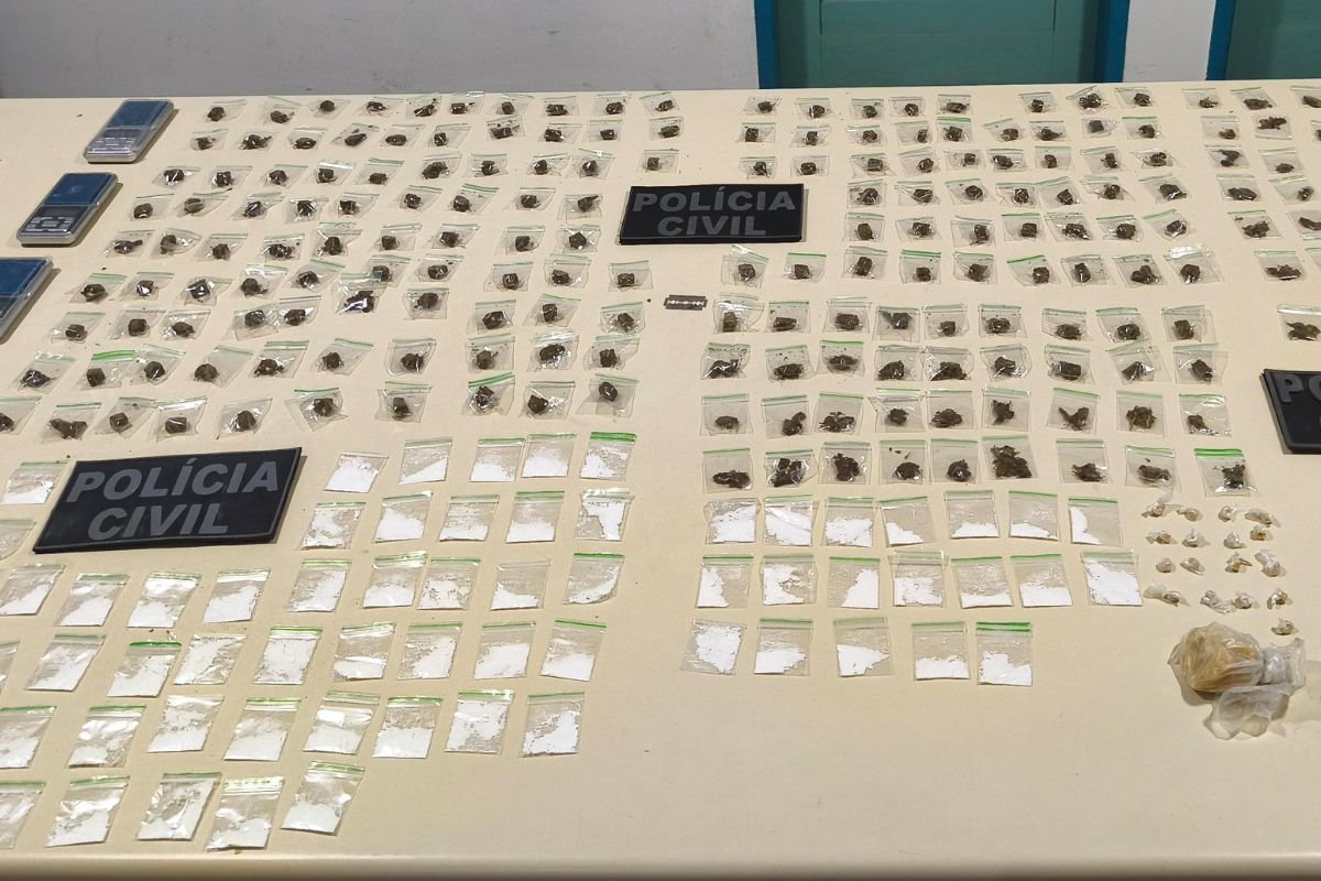 Durante as diligências, foram apreendidas 17 pedras de crack, 36 porções de maconha e 19 embalagens do tipo “zip lock”, todas fracionadas e prontas para comercialização. Em continuidade à ação, as equipes localizaram dois pontos com indícios de entorpecentes enterrados. Após escavações, foram encontrados: 187 embalagens tipo “zip lock”, uma porção média de maconha, uma balança de precisão; além de 55 porções de cocaína, um pedaço médio de crack, dois pedaços médios de maconha e mais duas balanças de precisão.