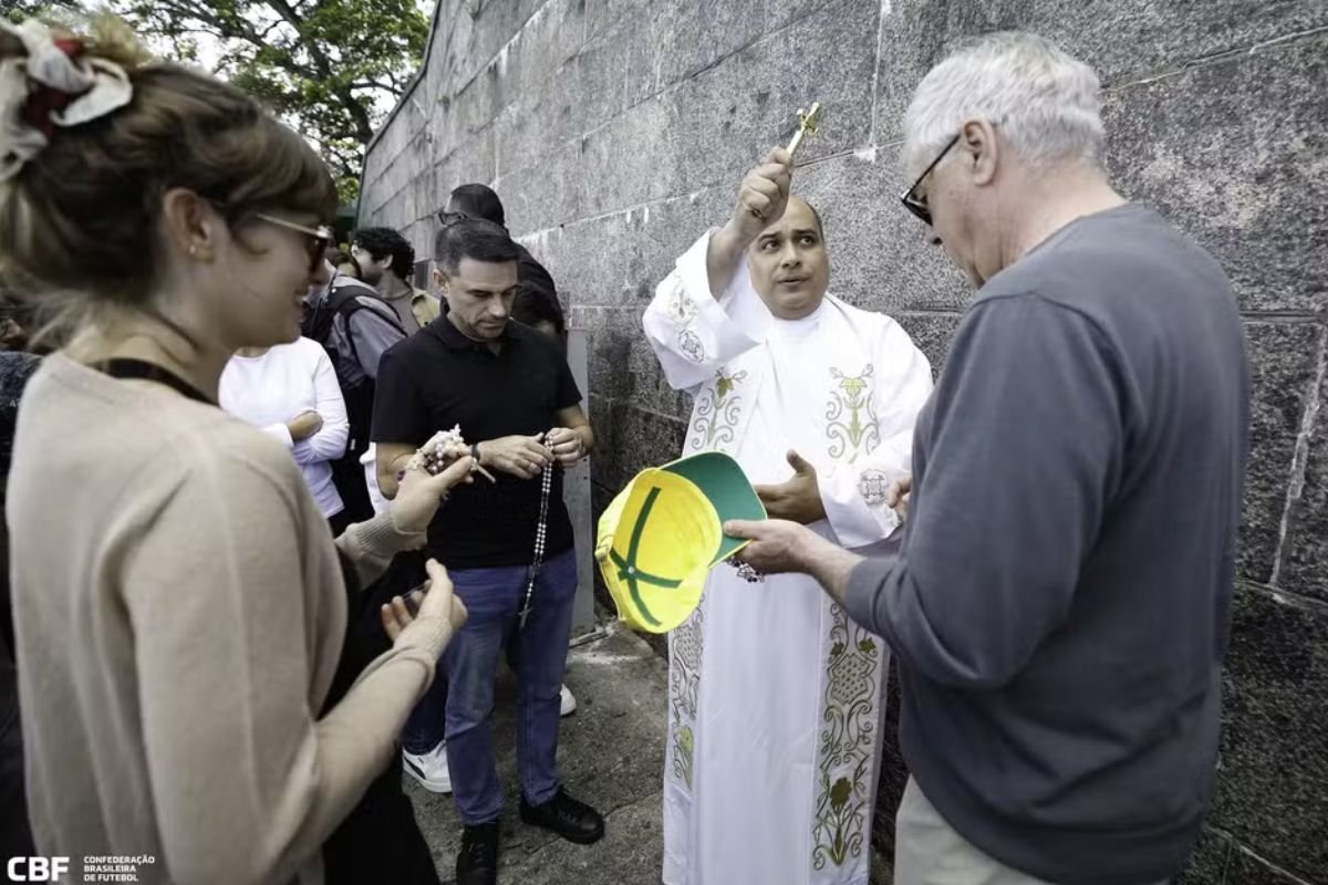 Na manhã deste sábado (31), Carlo Ancelotti visita Cristo Redentor em um momento simbólico e espiritual que marca o início de sua trajetória como técnico da Seleção Brasileira de Futebol. Acompanhado por membros da equipe técnica, o italiano recebeu uma bênção especial do Padre Omar, reitor do Santuário.