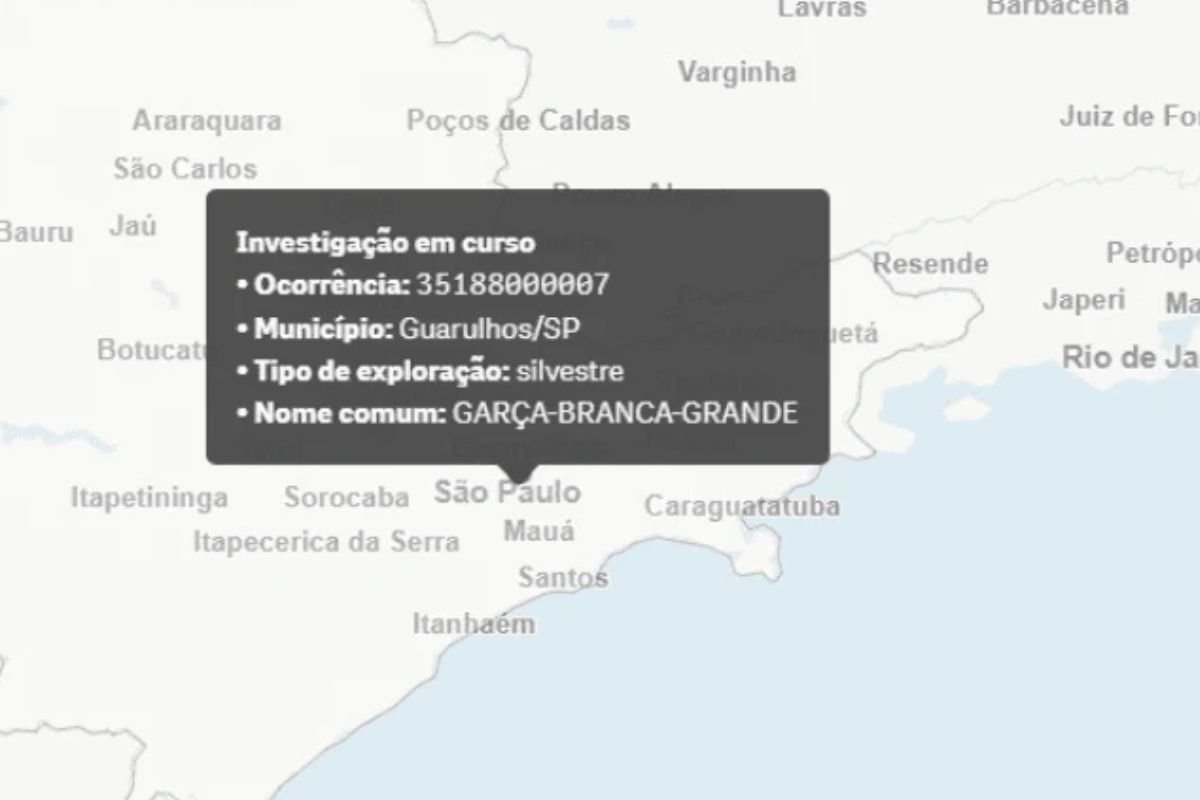 A gripe aviária em São Paulo tem seu primeiro caso suspeito registrado, segundo dados da plataforma do Ministério da Agricultura e Pecuária (Mapa). O alerta foi emitido após a detecção de uma garça-branca-grande com sintomas da Síndrome Respiratória e Nervosa das Aves (SRN), no município de Guarulhos, na região metropolitana.