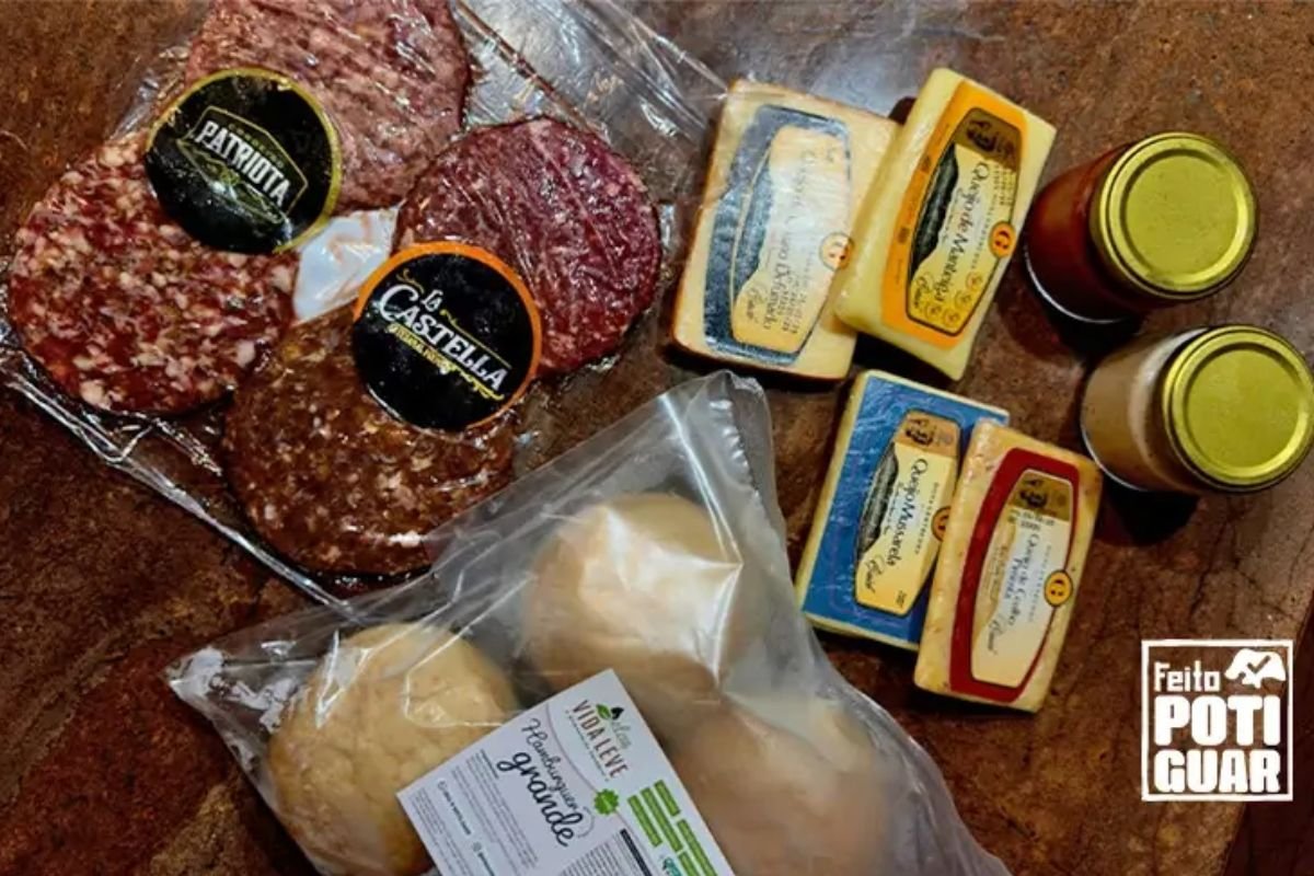 O combo inclui quatro pães Elas Vida Leve, quatro hambúrgueres artesanais da Cordeiro Patriota, quatro tipos de queijo da Dona Gertrudes e dois molhos especiais: ketchup de goiabada e maionese vegana temperada da casa, com assinatura da chef Lua Andrade, sócia da fábrica de panificação inclusiva Elas Vida Leve. Tudo isso entregue em uma bolsa térmica exclusiva com a marca Feito Potiguar.