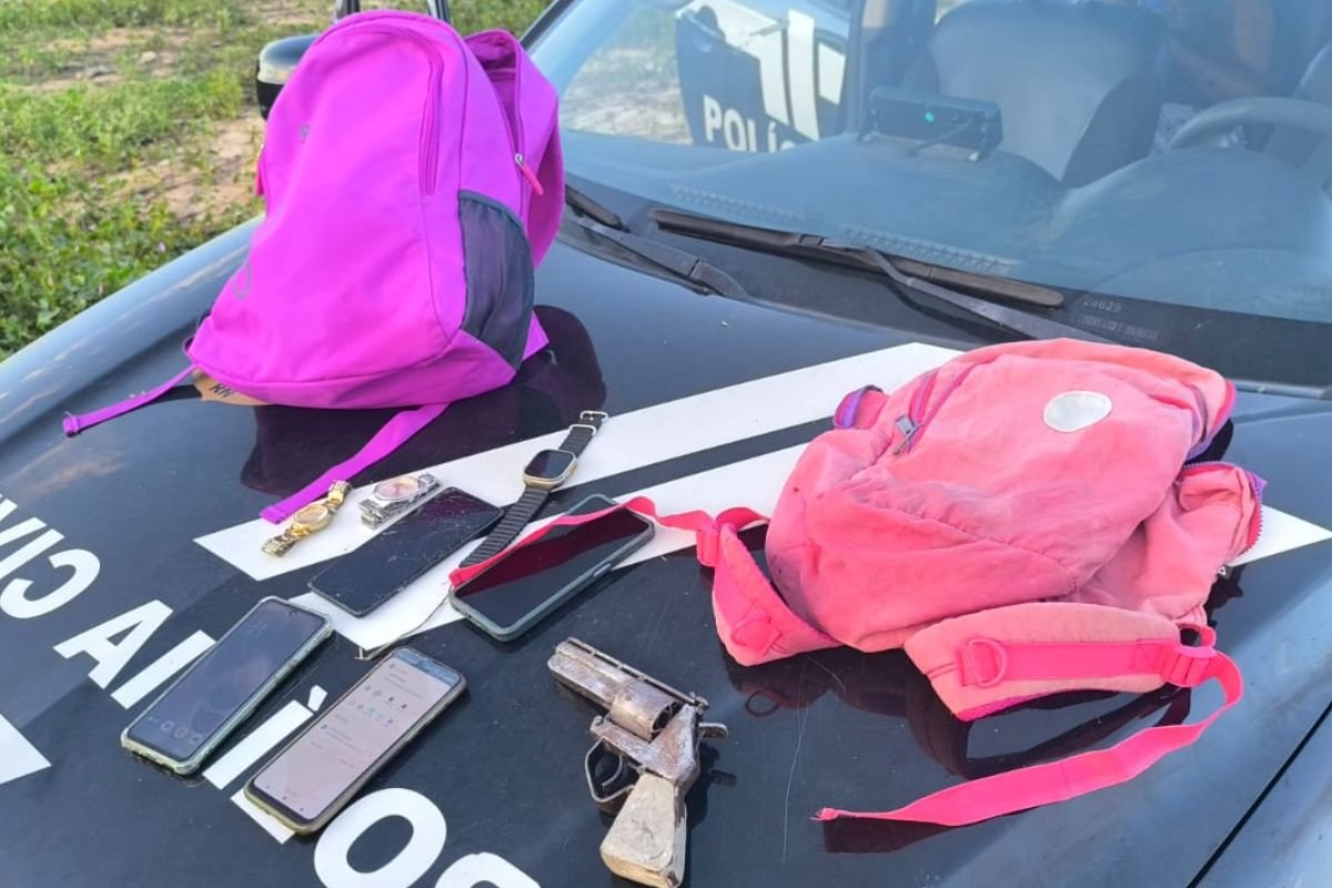 No momento da prisão, o homem estava com diversos objetos subtraídos das vítimas, incluindo celulares e carteiras. Além disso, os agentes localizaram a arma de fabricação caseira usada no assalto. Durante as buscas, os policiais também encontraram alguns celulares que haviam sido enterrados em uma área de mata.