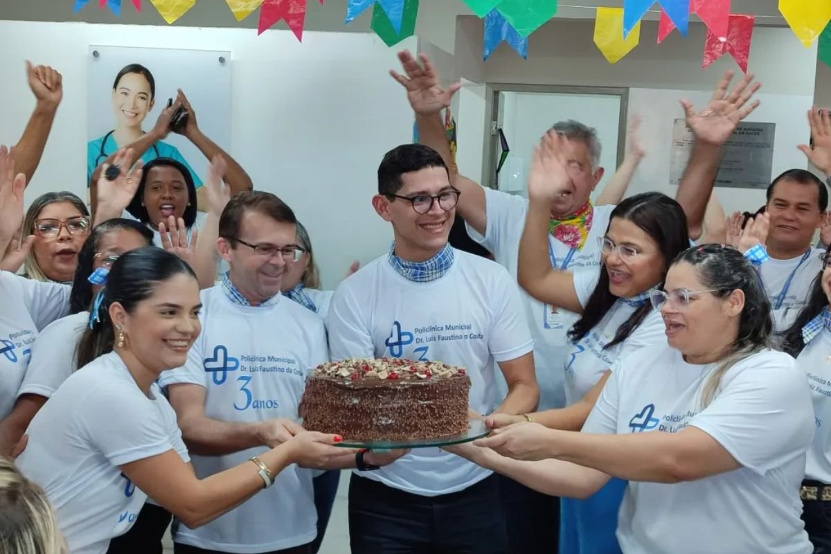 A comemoração aconteceu na sexta-feira (13), com um café junino que reuniu o prefeito Emídio Júnior, a secretária municipal de Saúde, Sâmara Figueiredo, a diretora da Policlínica, Mariana Silva, além de funcionários e pacientes.