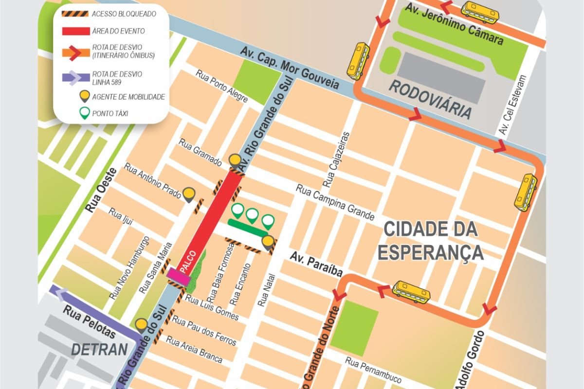 A Secretaria Municipal de Mobilidade Urbana (STTU) informou que, devido à realização do São João de Natal 2025 – Polo Zona Oeste, haverá interdição parcial da Avenida Rio Grande do Sul, no bairro Cidade da Esperança, na zona Oeste da capital.