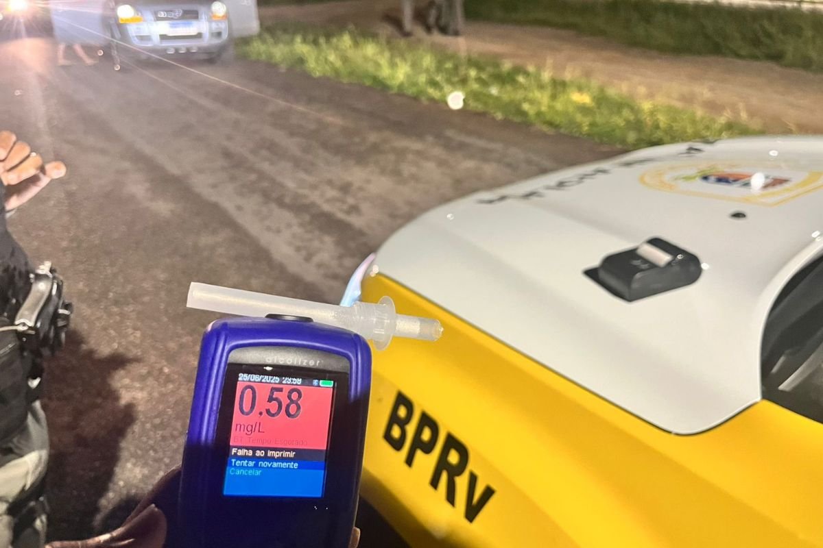 Submetido ao teste do bafômetro, o motorista apresentou teor alcoólico de 0.58 mg/l, índice que configura crime de trânsito, conforme determina o Código de Trânsito Brasileiro.