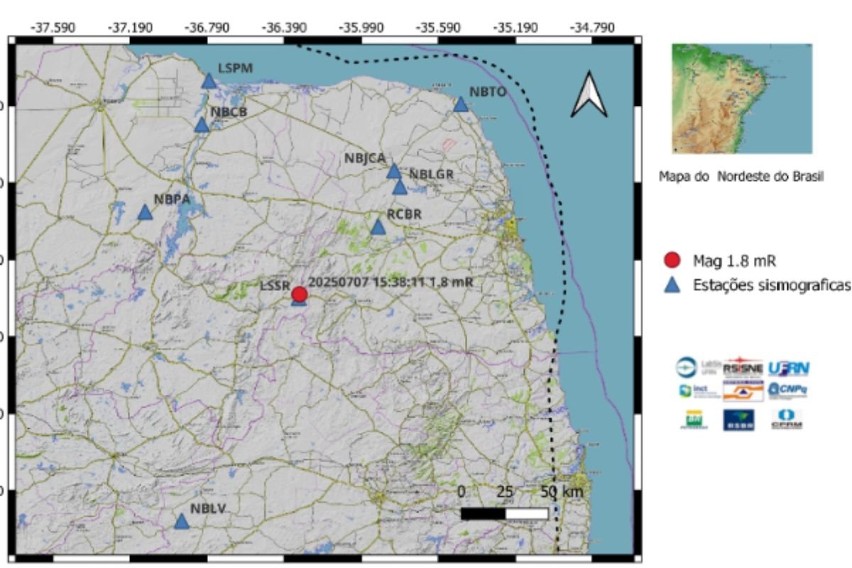 Um tremor de terra foi registrado no município de Currais Novos  (RN) na última segunda-feira (7). O evento ocorreu às 15h38 UTC (12h38 no horário de Brasília) e teve magnitude preliminar de 1.8 na escala Richter, segundo dados do Laboratório Sismológico da Universidade Federal do Rio Grande do Norte (LabSis/UFRN).