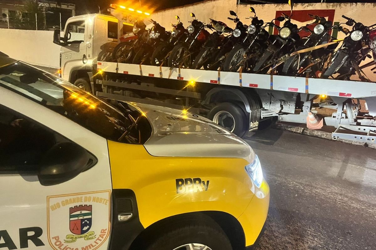 A “Operação Sossego” do Comando de Policiamento Rodoviário Estadual(CPRE), por meio do Batalhão Rodoviário, recolheu onze motocicletas com escapamentos barulhentos ao depósito, na noite desta terça-feira e início da madrugada de hoje, na cidade de Parnamirim.