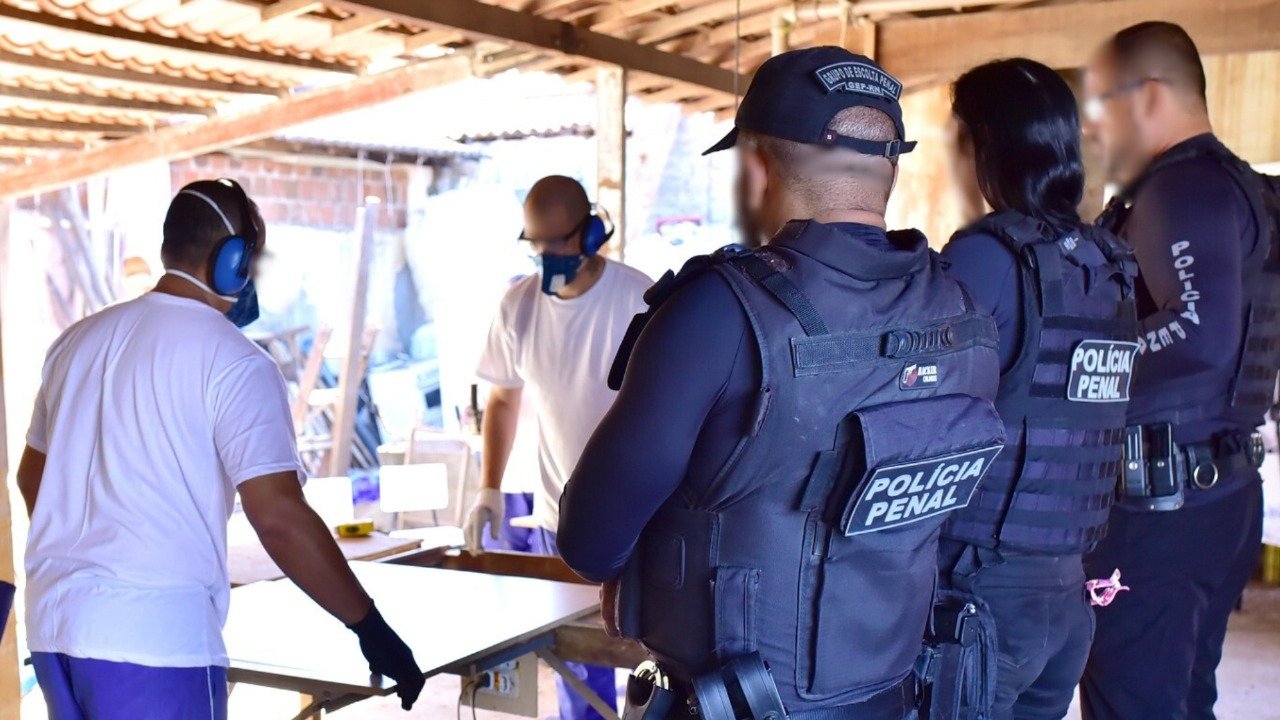 O diretor da unidade prisional de Pau dos Ferros, policial penal Caio Arnaud, explica que os presos já começaram as atividades laborais na marcenaria do presídio. O trabalho, que inclui a recuperação de mesas e cadeiras escolares, móveis administrativos, mesas e bancos de refeitório, está sendo realizado com a colaboração de apenados especializados em marcenaria e serralheria.
