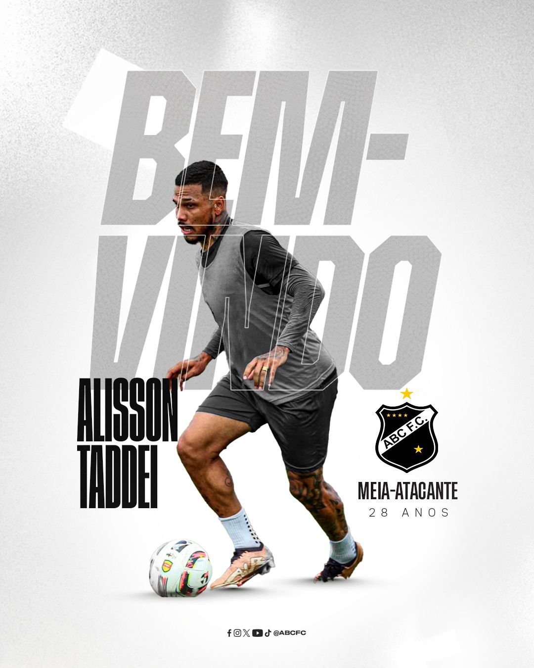 O ABC acertou a contratação do meia-atacante Alisson Taddei, que estava no Joinville/SC. O jogador de 28 anos anos tem passagens por clubes como Goiás/GO, Aparecidense/GO, Ypiranga/RS, XV de Piracicaba/SP, Ferroviária/SP, Floresta/CE entre outros do país.