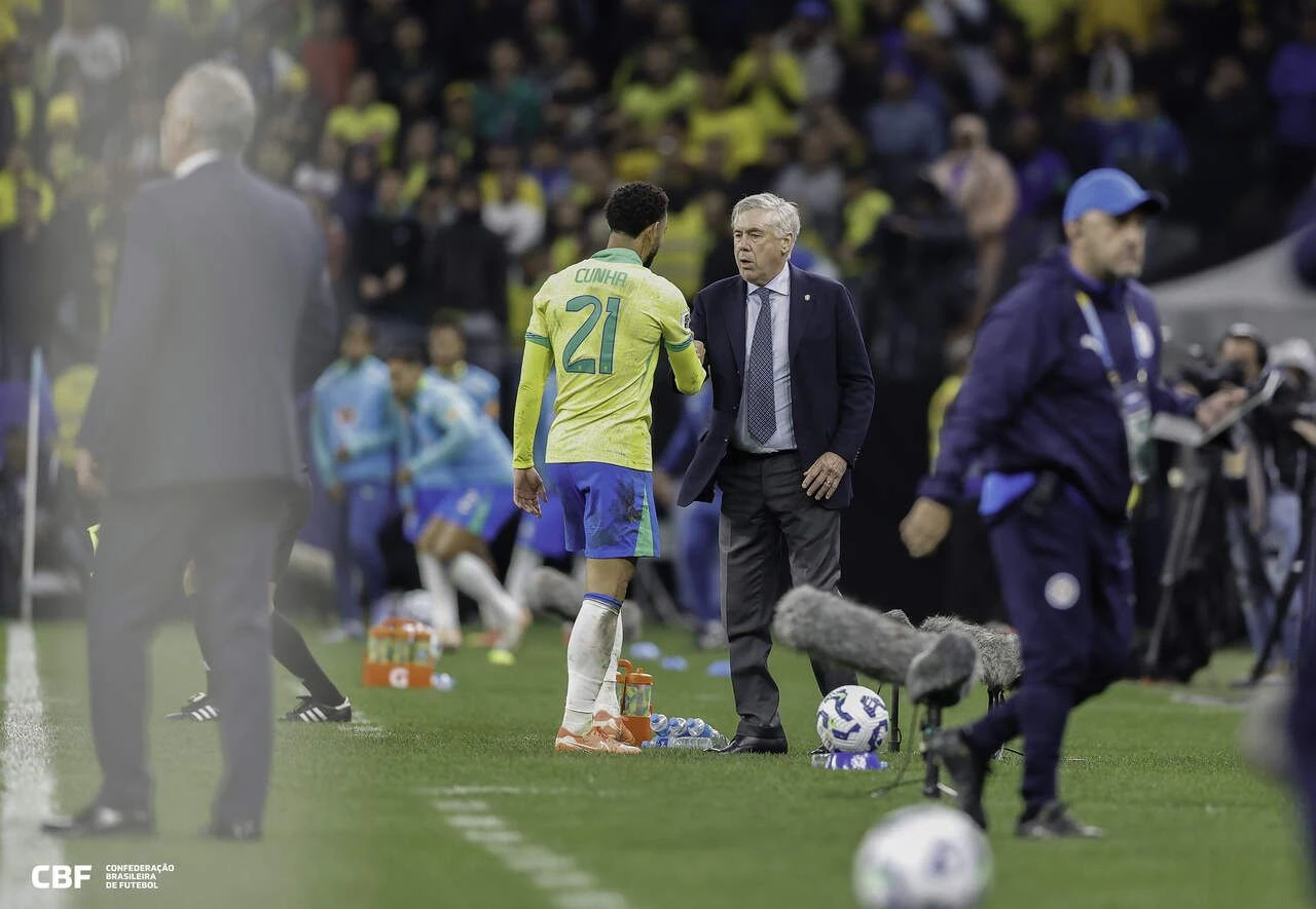 Isso ocorre por alguns motivos. Primeiro, Vini Jr., suspenso, descansará nesta Data Fifa, não constando na lista final de Ancelotti. Ele foi titular nas duas partidas de Ancelotti à frente da Seleção. Além disso, Vanderson, Alex Sandro, e Matheus Cunha foram cortados por lesão. Os três foram titulares no último jogo do Brasil sob o comando do italiano, em vitória por 1 a 0 sobre o Paraguai, na Neo Química Arena, em 10 de junho.