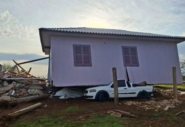 Uma casa foi arrastada para cima de um carro durante a passagem de um tornado na cidade de Barra Bonita, no Extremo-Oeste de Santa Catarina. O fenômeno foi confirmado pela Secretaria de Estado de Proteção e Defesa Civil.