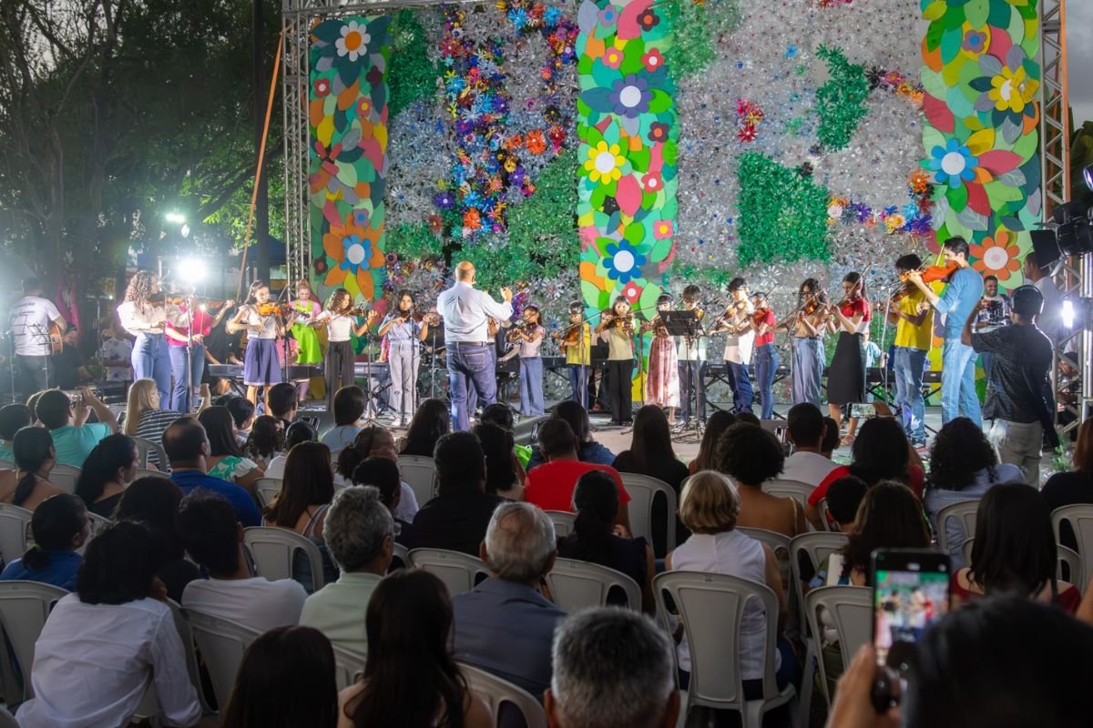 Todo o cenário do festival foi produzido pela equipe da SEMUC, utilizando materiais recicláveis. Dessa forma, a ação também destacou o compromisso da gestão municipal com a sustentabilidade e o reaproveitamento criativo de recursos.