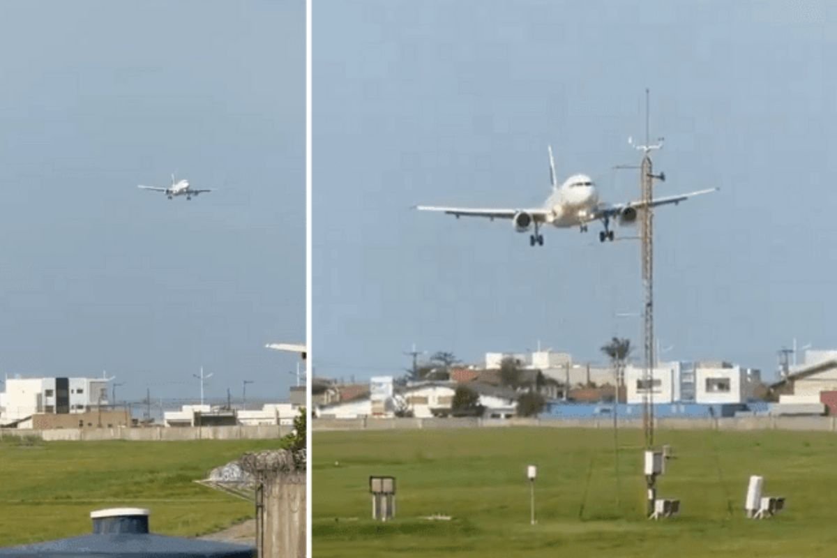 Um avião pousa de lado em Santa Catarina e chama atenção nas redes sociais pela forma inusitada da aterrissagem. O pouso ocorreu na tarde da última quarta-feira (5), por volta das 16h30, no Aeroporto Internacional de Navegantes, no litoral norte do estado. A aeronave da Latam vinha de Congonhas, em São Paulo, e foi registrada se aproximando da pista em um ângulo lateral.