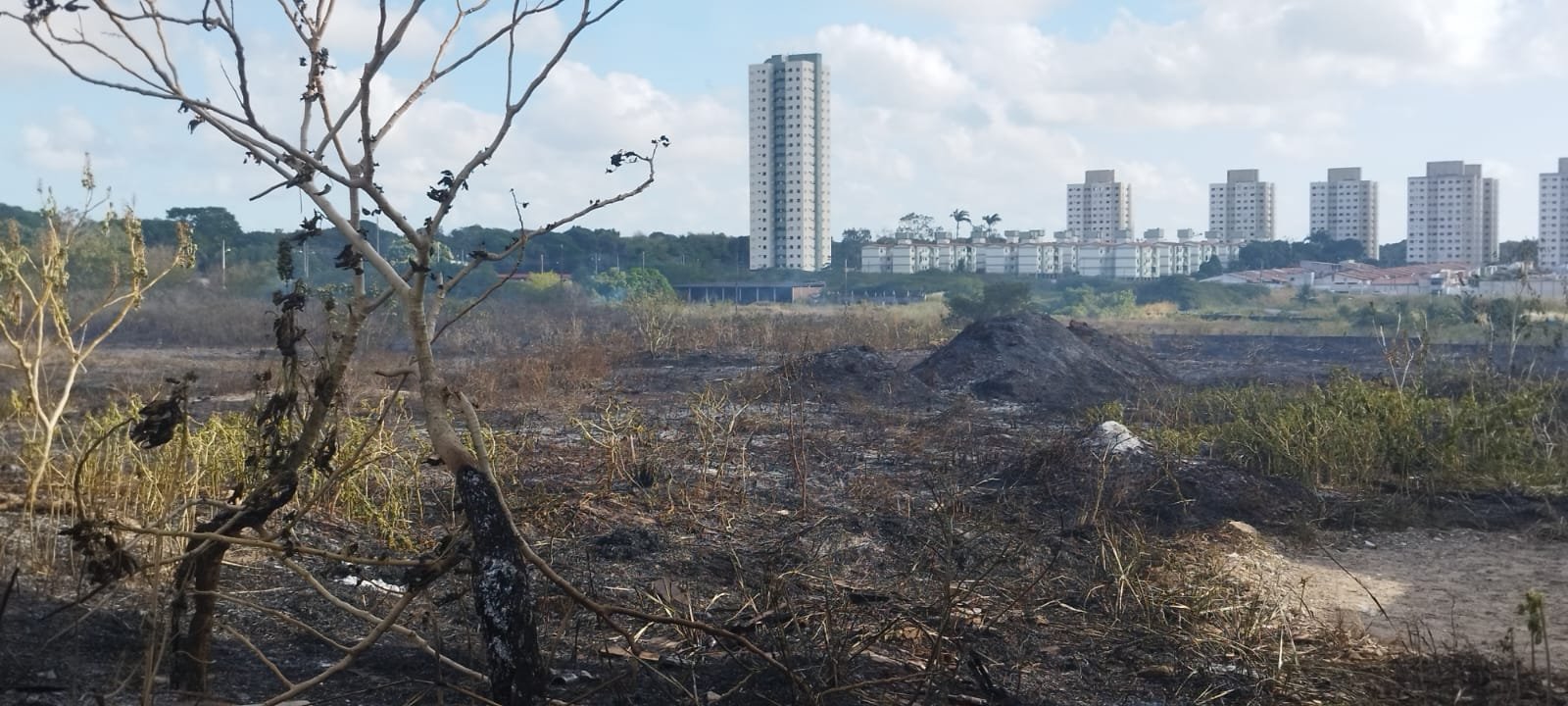 Um incêndio de grandes proporções atingiu um terreno de mata fechada às margens da BR-101 Sul, em uma área que está desocupada há mais de 30 anos. O fogo começou nas proximidades de uma passarela e se alastrou rapidamente para o interior do terreno, próximo a diversas residências.