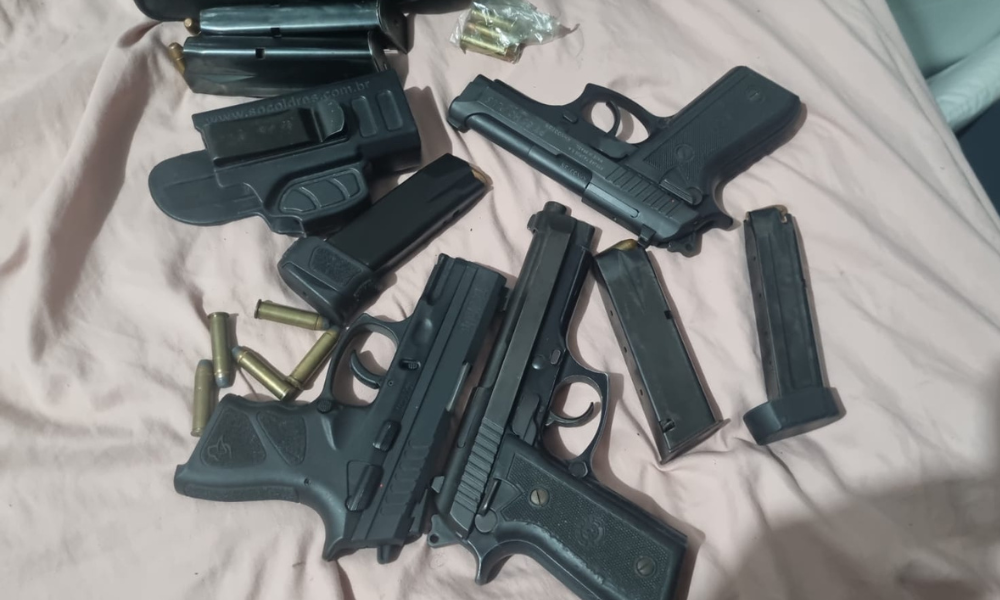 No decorrer das diligências, os policiais civis apreenderam diversas armas de fogo. Entre o material localizado, foi encontrado um revólver calibre .38 sem registro, cujo calibre é compatível com o projétil que vitimou as vítimas. O armamento será submetido à perícia para análise técnica e verificação de eventual vínculo com o crime investigado.