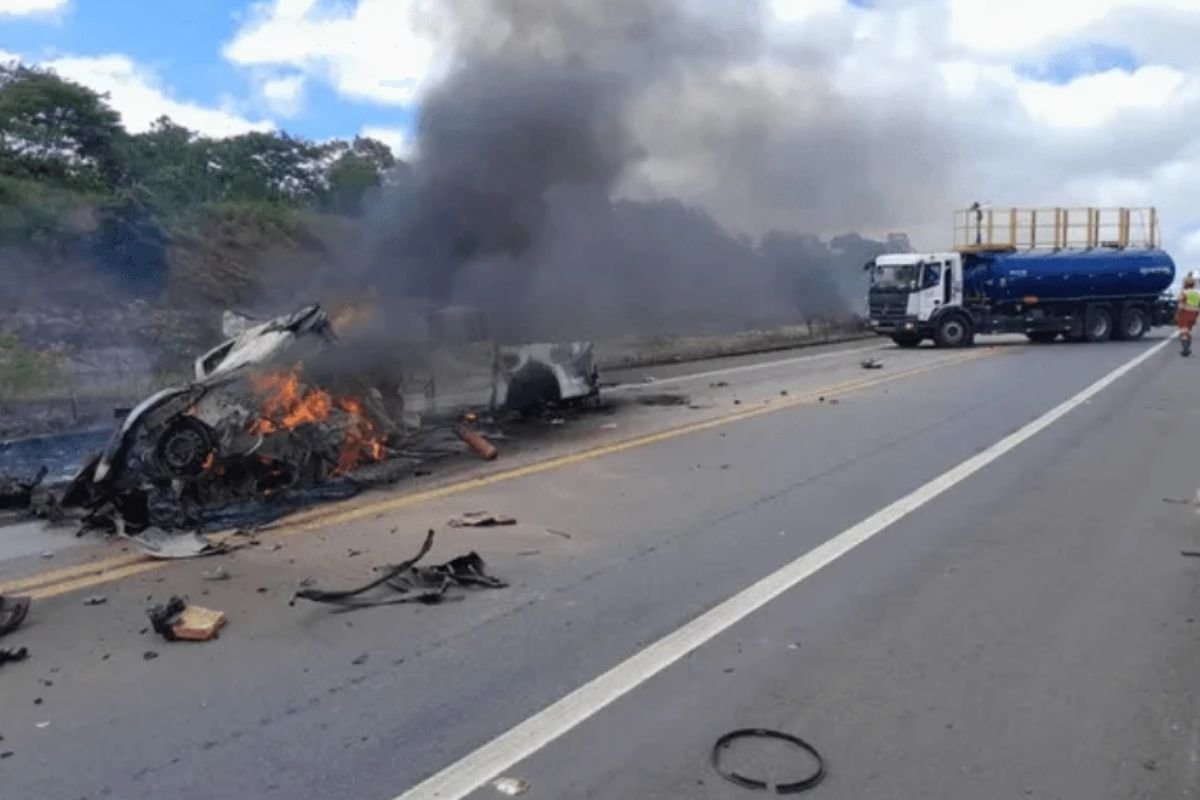 De acordo com a PRF, a batida envolveu uma caminhonete do tipo picape e um carro de passeio. Com o impacto, os dois veículos pegaram fogo, o que dificultou o resgate imediato das vítimas. Além disso, as chamas se espalharam rapidamente pela pista, provocando a interdição total do trecho nos dois sentidos da rodovia.