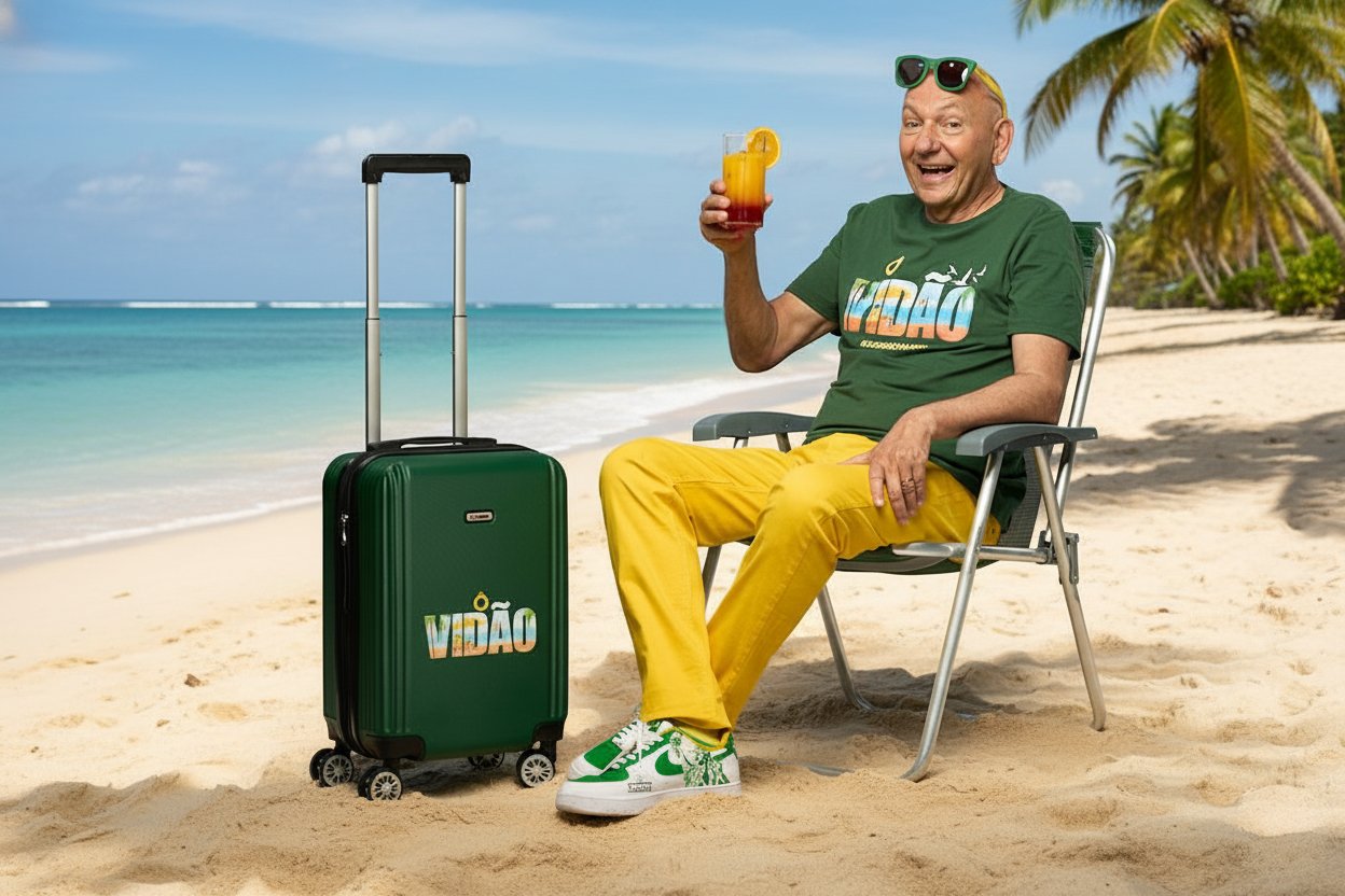 A linha reúne itens de praia e viagem: guarda-sol, cadeira de praia, cooler, toalha, camiseta e mala. Cada peça carrega o clima leve e bem-humorado que a mensagem do quadro “Ô Vidão” transmite. As cores e estampas remetem ao sol, ao descanso e ao prazer de aproveitar os dias de calor sem pressa.