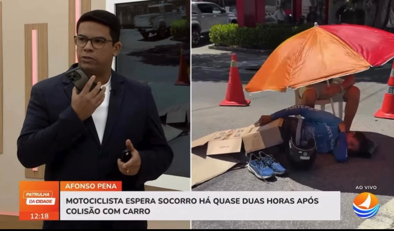 Desde o início do programa, às 11h40, a equipe mostrou a situação da vítima. O homem aguardava socorro no meio da rua, sem qualquer atendimento médico. Enquanto isso, o trânsito seguia intenso na região.