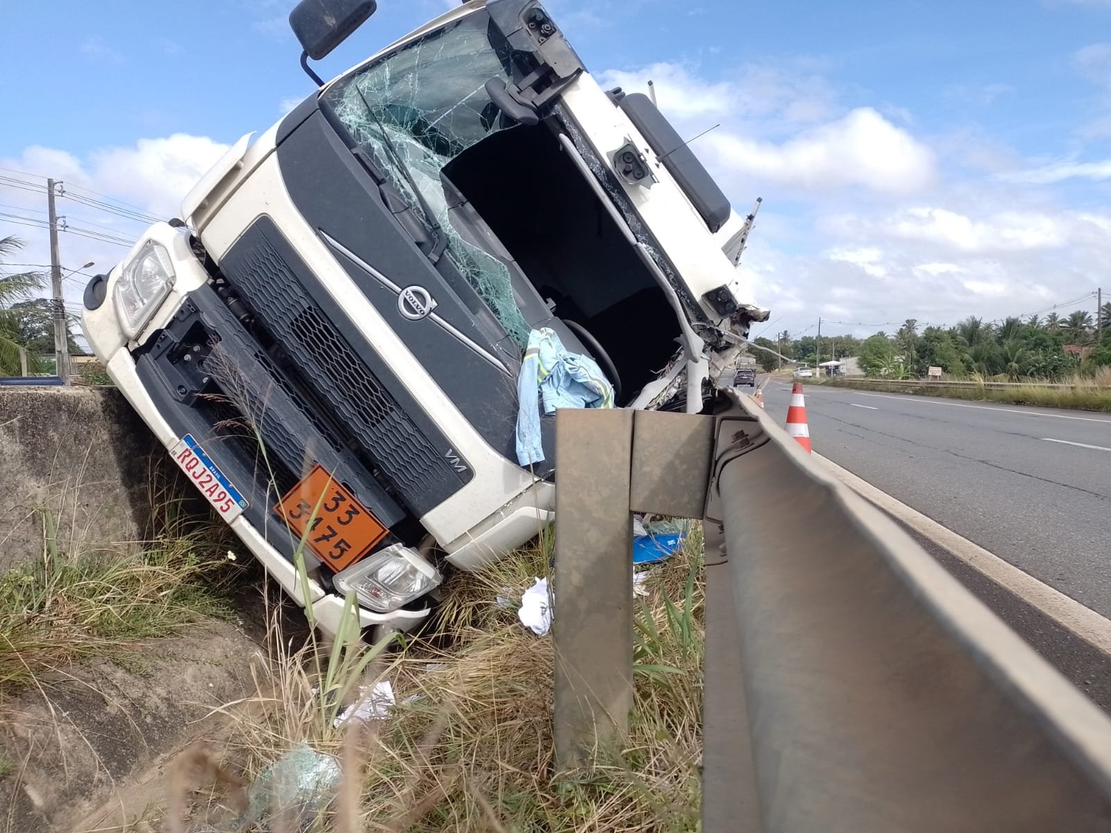 Uma carreta tombou na BR-101, na altura do município de Goianinha, nas primeiras horas da manhã desta quinta-feira (22). O acidente mobilizou equipes do Corpo de Bombeiros Militar do Rio Grande do Norte e causou lentidão no trecho da rodovia federal.