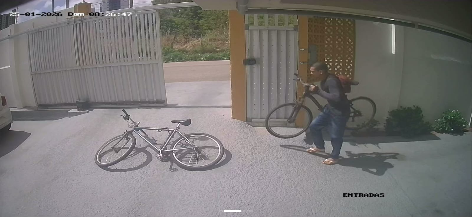 Um homem foi flagrado por câmeras de segurança furtando duas bicicletas no último domingo (25), em um condomínio residencial localizado na rua Militão Chaves, no bairro de Candelária, na zona Sul de Natal. As imagens do sistema de monitoramento mostram claramente o rosto do suspeito, que ainda não foi identificado nem localizado pelas forças de segurança.