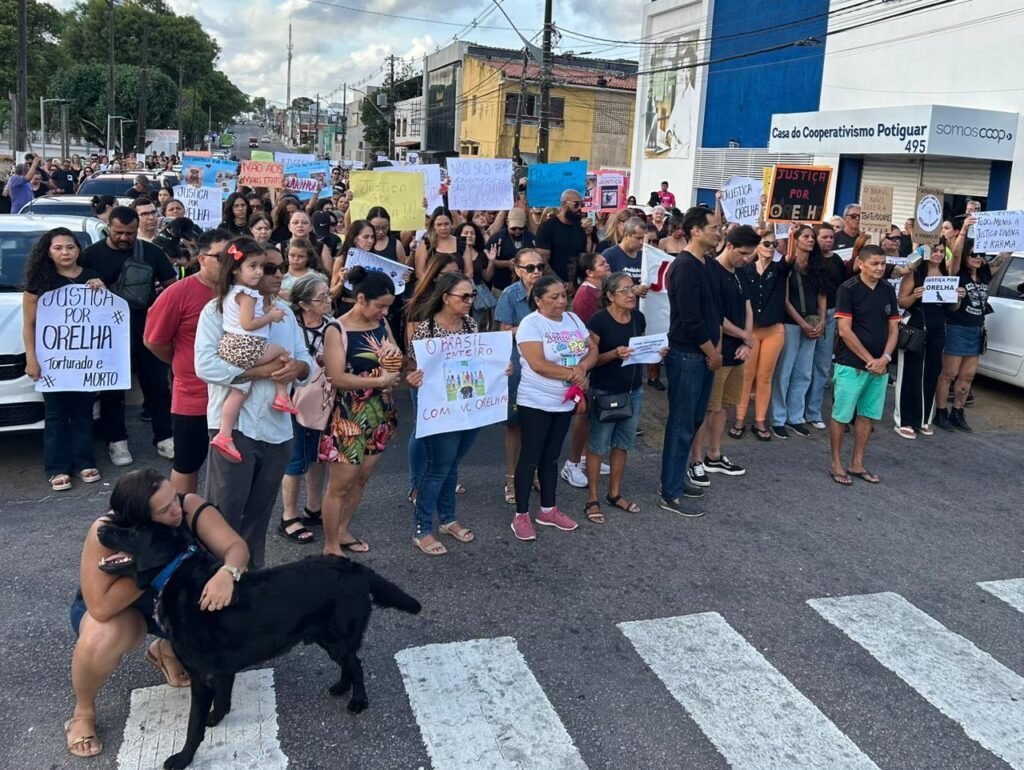 A justiça pelo cão Orelha voltou a mobilizar manifestantes neste domingo (1), desta vez em Natal, no bairro de Mirassol. Durante a tarde, ativistas da causa animal, moradores e protetores independentes se reuniram para cobrar punição aos responsáveis pela morte do cachorro, além de defender maior rigor em casos de maus-tratos e a revisão do Código Penal para situações semelhantes.