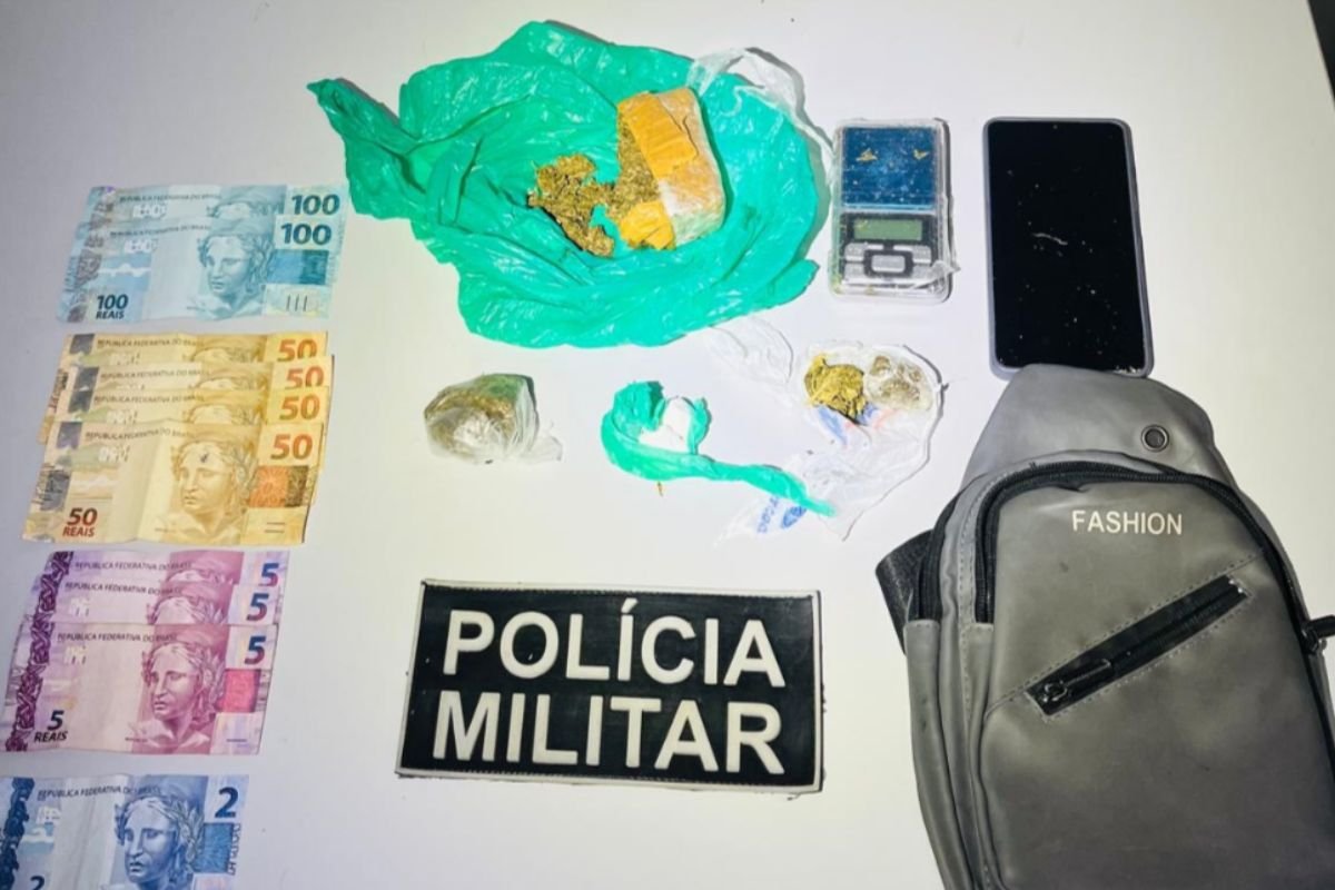 Apesar da tentativa de fuga, os militares conseguiram alcançar o homem em poucos minutos. Em seguida, realizaram a abordagem e a busca pessoal, procedimento padrão adotado em situações semelhantes. Durante a revista, os policiais encontraram uma bolsa presa ao corpo do suspeito, onde estavam armazenadas substâncias entorpecentes, além de dinheiro fracionado, indício comum da prática de comércio ilegal de drogas.
