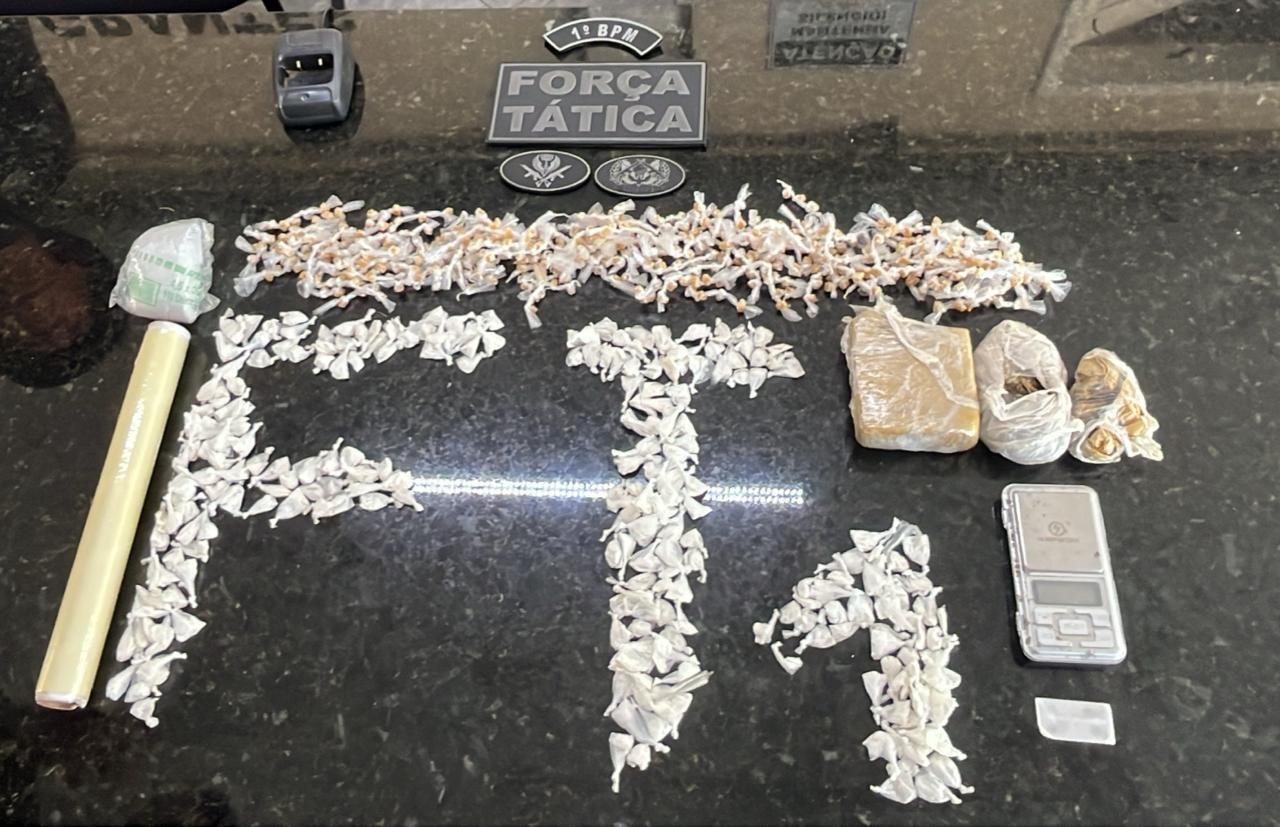 O volume de drogas chamou a atenção dos militares e reforçou a suspeita de comercialização no local. Além dos entorpecentes, a equipe apreendeu uma balança de precisão, um rolo de papel filme, um rádio comunicador com carregador, uma lâmina de corte e diversas embalagens do tipo ZipLock. Esses materiais, segundo a polícia, são comumente utilizados para fracionar, embalar e distribuir drogas, o que caracteriza o tráfico.