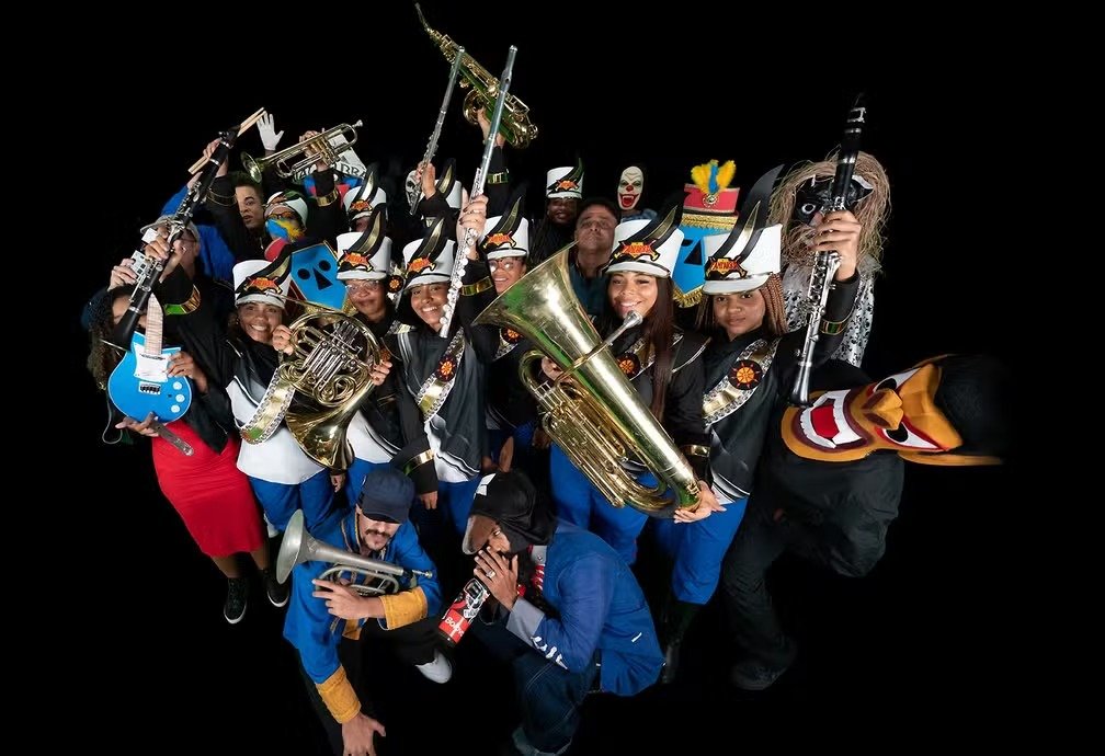 Marcadas pelo encontro entre percussão e instrumentos de sopro, as fanfarras atravessam a história musical do nosso continente. Inicialmente associadas a contextos militares de disciplina colonial, foram sendo apropriadas pelos pelos povos originários e africanos ao longo do tempo, dando origem e se integrando a ritmos como o axé, o frevo, a cumbia, a chicha andina e o carnavalito, entre outros. Sempre como música coletiva, feita para a rua, para o deslocamento e para o encontro.
