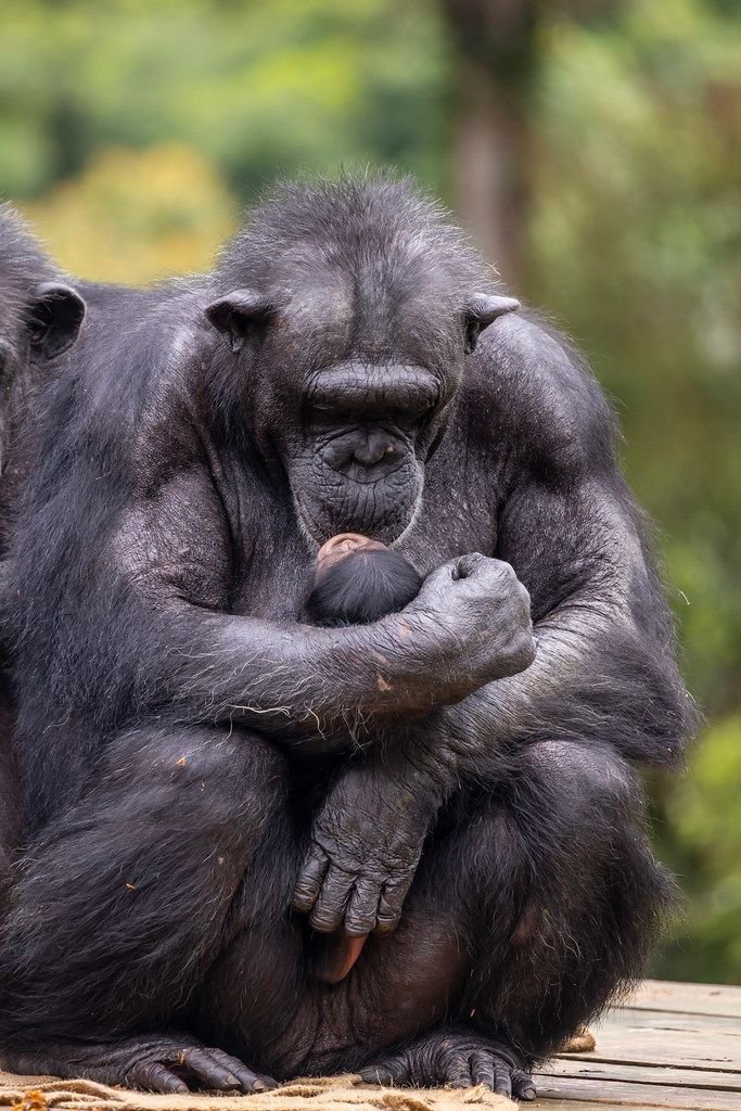 Os chimpanzés são uma espécie considerada em perigo de extinção. Por isso, nascimentos são comemorados como importantes estratégias de conservação para o estabelecimento de populações de segurança da espécie.