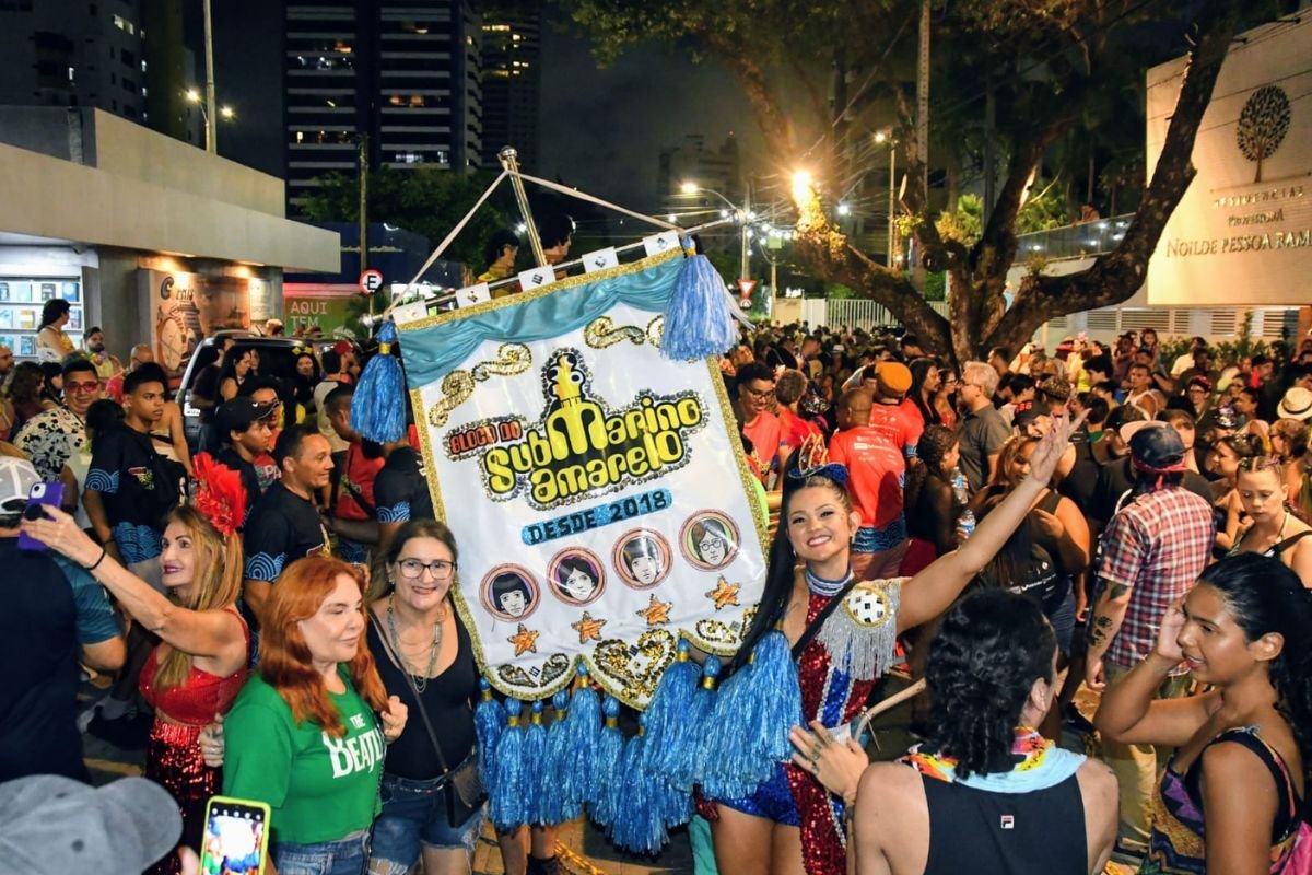 O Bloco Submarino Amarelo garantiu a animação da Zona Leste na noite desse sábado (14) e reuniu público recorde no Largo do Atheneu, dentro da programação oficial do Carnaval promovido pela Prefeitura do Natal. Os foliões se concentraram na rua Floriano Peixoto a partir das 16h. Em seguida, a canção “Yellow Submarine”, sucesso dos The Beatles, deu início à festa e mergulhou o público na atmosfera da beatlemania em ritmo de marchinhas e frevo.