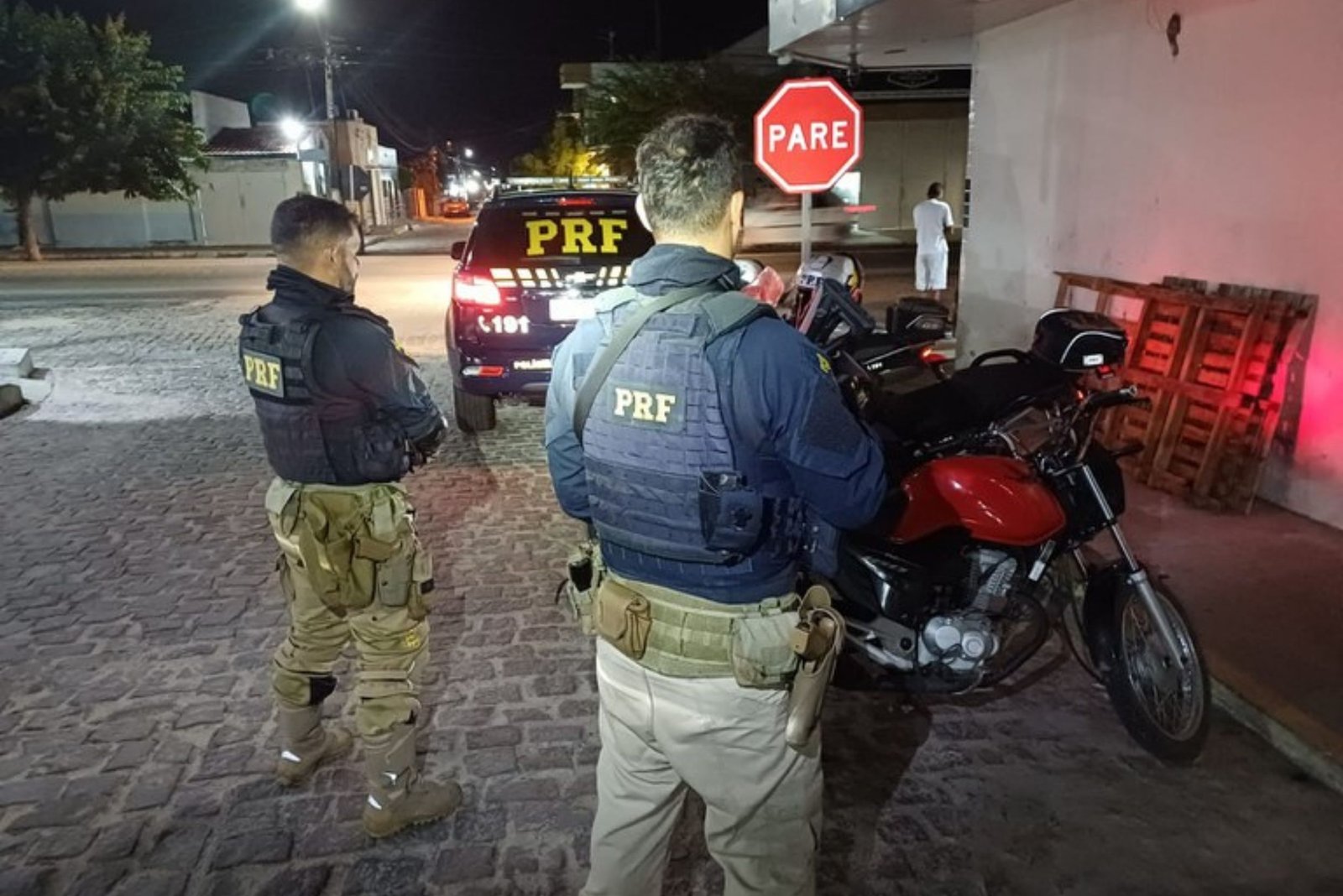 Durante fiscalização de rotina, os policiais abordaram uma motocicleta Honda/CG 160 Start. Ao realizarem a verificação dos elementos identificadores, foram constatados indícios de adulteração no motor e no chassi do veículo.