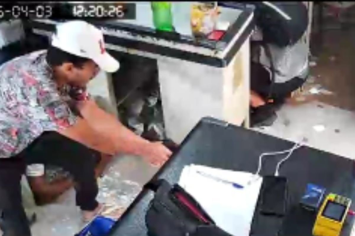 Pelas imagens, é possível ver a ação dos suspeitos no estabelecimento. Os homens obrigaram as pessoas presentes a se deitarem no chão enquanto realizavam o assalto.