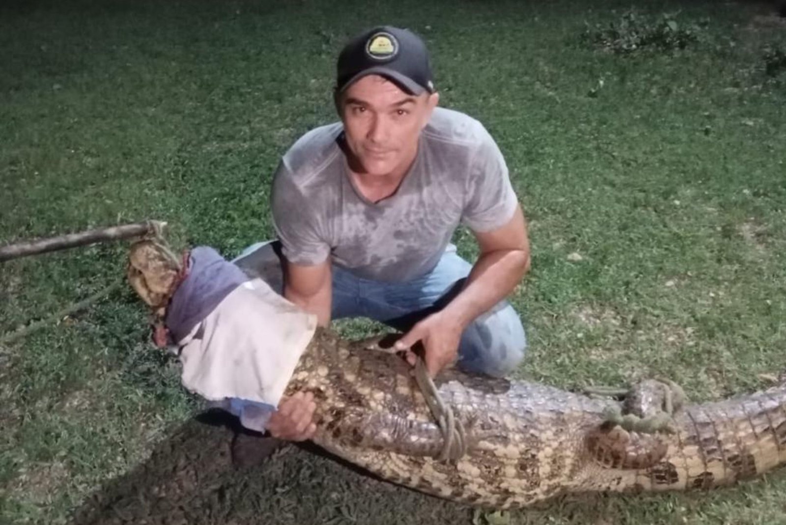 Jacaré é capturado em açude no município de São Vicente