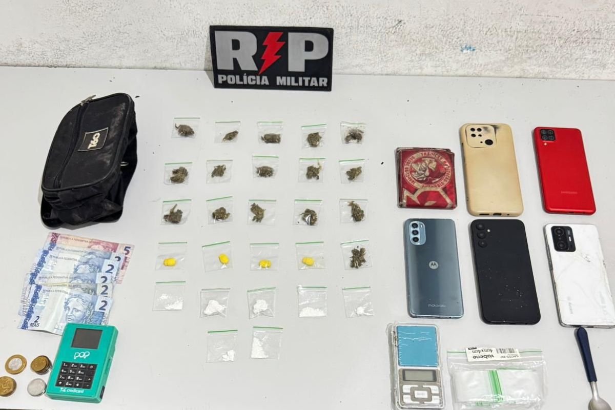 Os agentes também recolheram cinco aparelhos celulares, uma quantia em dinheiro fracionado no valor de R$ 19,50 e diversas embalagens do tipo “zip lock”. Segundo a polícia, esses materiais indicam a prática de fracionamento e comercialização de drogas. Além disso, uma colher utilizada para o preparo dos entorpecentes foi encontrada com os suspeitos.