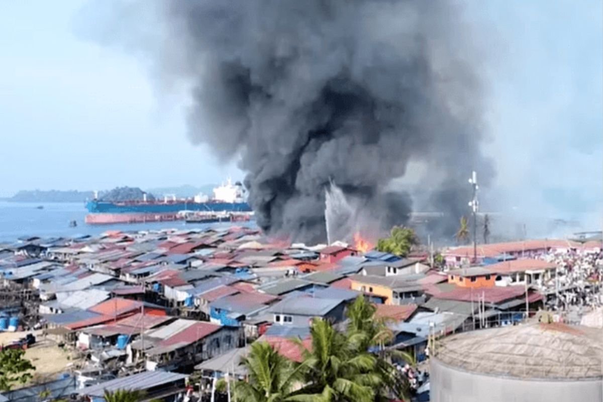 O fogo teve início em uma das aldeias formadas por casas de madeira construídas sobre palafitas. Esse tipo de estrutura, bastante comum na região, contribuiu para a rápida propagação das chamas. Além disso, a proximidade entre as residências facilitou o avanço do incêndio.