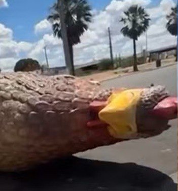 Uma forte ventania provocou um incidente inusitado na cidade de Assú, interior do Rio Grande do Norte. O vento derrubou a estrutura de uma galinha gigante instalada em um posto de combustíveis às margens da BR-304, na tarde desta quinta-feira (23). O monumento, que tinha aproximadamente seis metros de altura, chamava a atenção de quem passava pela rodovia por seu tamanho e aspecto curioso.