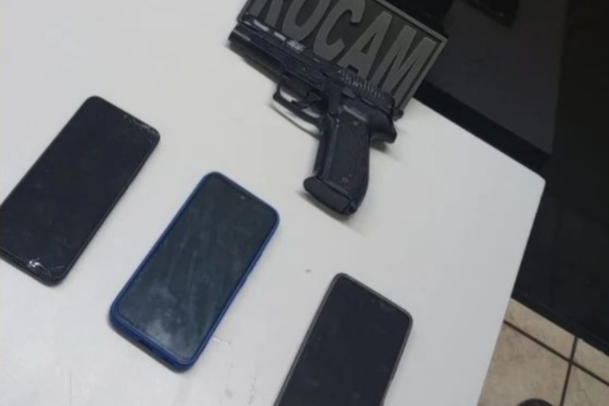 Um dos suspeitos, menor de idade, foi detido e portava um simulacro de arma de fogo. O outro infrator também foi capturado, em um terreno próximo ao local da fuga.