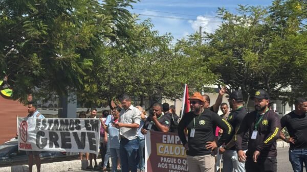 Vigilantes protestam em Natal na manhã desta segunda-feira (19) em frente ao Hospital Monsenhor Walfredo Gurgel. O Sindicato dos Vigilantes do Rio Grande do...