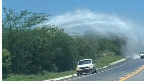 Imagens nas redes sociais mostram um grande volume de água sendo despejada às margens da BR-304, entre Itajá e Angicos, por volta das 13h...