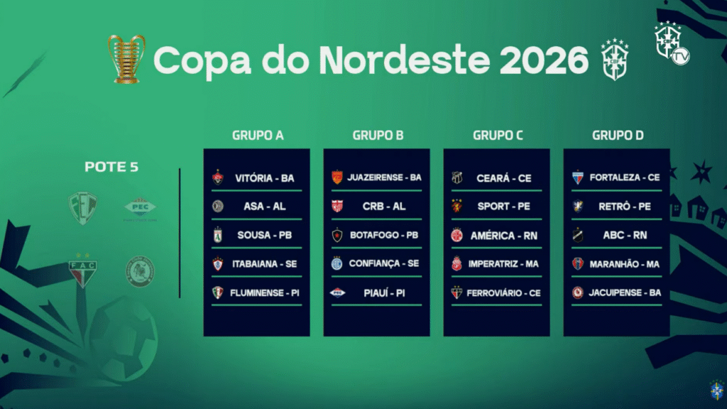 O sorteio dos grupos da Copa do Nordeste 2026 acontece nesta terça-feira (3) e terá transmissão ao vivo a partir das 14h pelo YouTube...