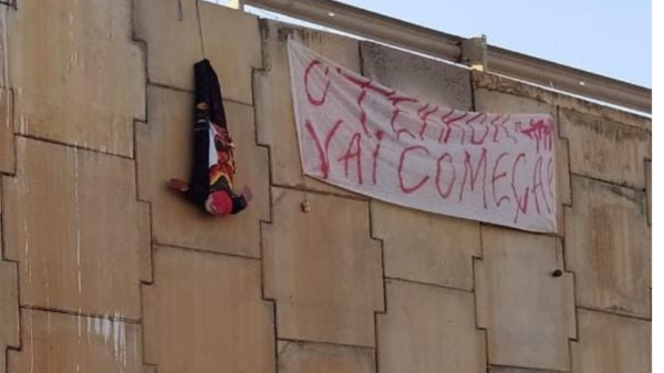 Um boneco e uma faixa com a frase “O terror vai começar” estavam no viaduto do bairro Nova Betânia, na cidade de Mossoró, no...