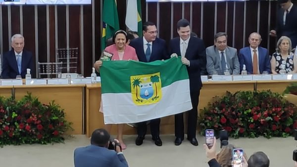 A governadora do Rio Grande do Norte, Fátima Bezerra (PT), reeleita no pleito de 2022, toma posse juntamente com o vice-governador Walter Alves em...