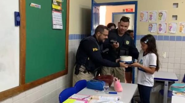 A Polícia Rodoviária Federal (PRF) fez uma surpresa para a pequena Piettra em seu aniversário, na terça-feira (11), na Escola Municipal Rotary, localizada em...