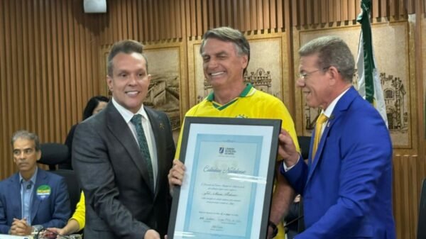 O ex-presidente Jair Bolsonaro (PL) recebeu, nesta quinta-feira (12), os títulos honoríficos de Cidadão Natalense e Cidadão Norte-rio-grandense em uma solenidade realizada na Câmara...
